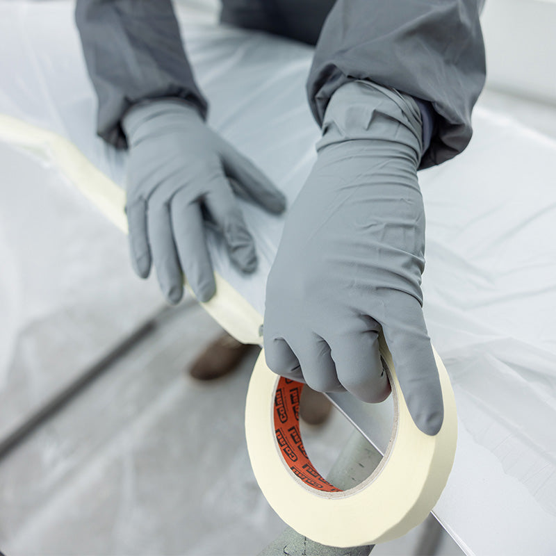 It holds excellent heat resistance, produces sharp & clean edges, and has excellent adhesion to rubber and metal. The silicone-free tape does not leave behind residue after removal.