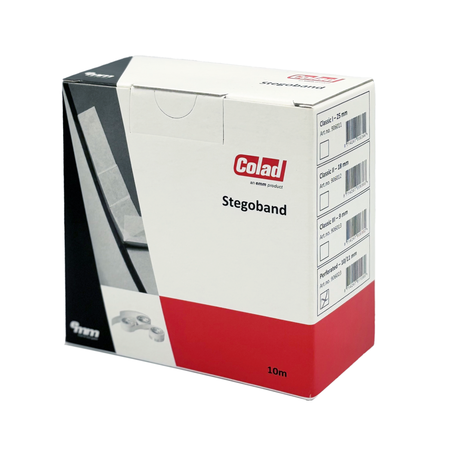 This Stegoband is perforated every 4 cm so it is easy to tear off. It has a wide edge of 21 mm in total. It is also possible only to use the small edges of 10 or 11 mm. Stegoband can be removed easily leaving no residue.