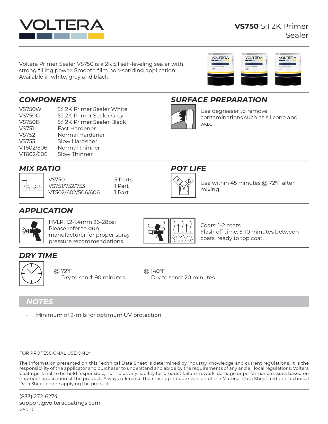 - Hardener: VS751; Fast / VS752; Normal / VS753: Slow